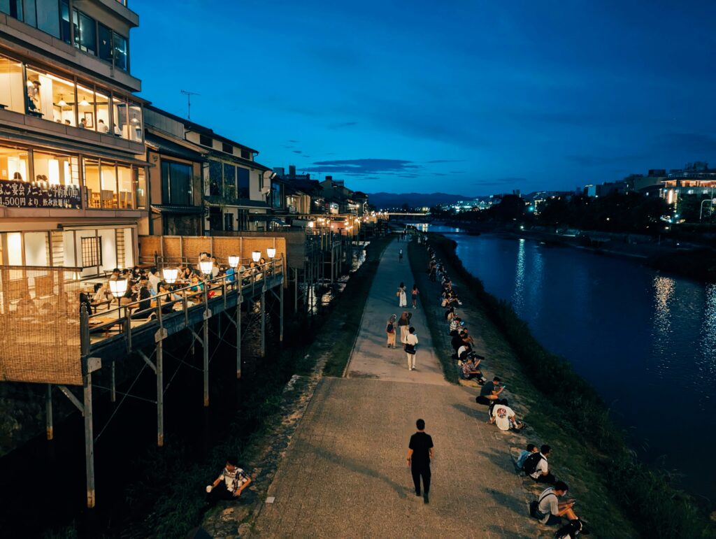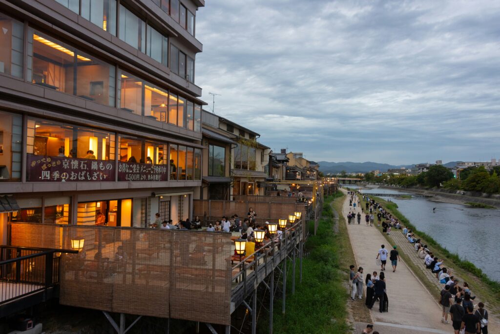 Kyoto summers are famous for being… well, intense. The city sits in a basin, trapping heat and humidity like a sauna. But the river offers a literal breath of fresh air.
